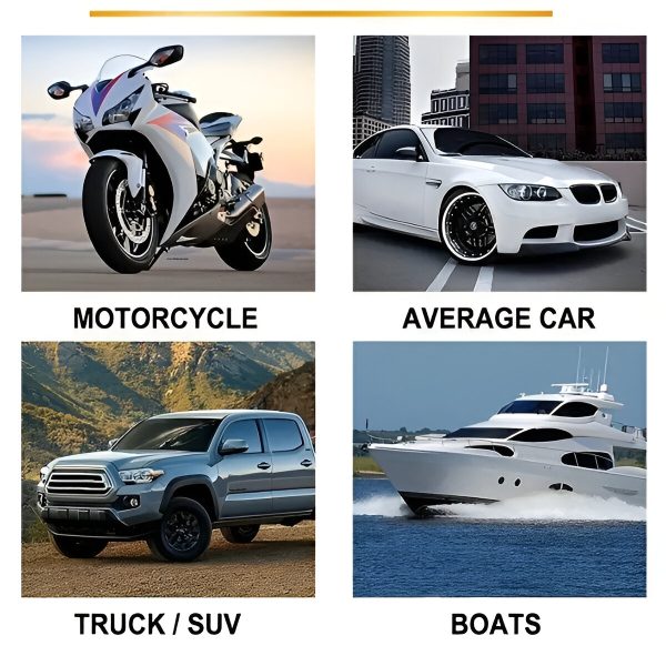 Utilizzate CARCOAT su auto, barche, moto, camper, ATV e altro ancora. È sicuro per tutte le superfici, comprese vernice, plastica e vetro.