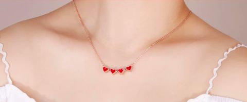 Modello con calamita che consente alla collana di trasformarsi da serie cuoricini in un quadrifoglio.