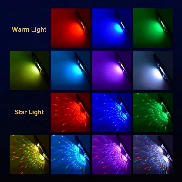 Modalità di illuminazione: bianco caldo, caldo + ciclo multicolore, star + controllo suono, star statico, strobo audio ad alta intensità